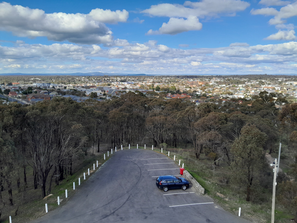 It turned out that a railway track was just behind the cabin, which only seemed to be used by overnight freight trains! Their loud horns and rumbling shook the cabin each time one passed through. As a result of a very disturbed night's sleep, we made a leisurely start on Tuesday, driving into town to explore on foot. Many historic buildings have been kept in good condition here, including the Court House, Post Office, Town Hall, Fire Station (now converted into the Central Goldfields Art Gallery with an amazing Indigenous interpretative garden) and Railway Station. It was a good walk to cover all of the buildings and the weather just about stayed dry for our wander - we'd well and truly earned morning tea back at Milo! From there, we walked to Princes Park and enjoyed a walk around Lake Victoria as well as a couple of laps with Lola on the fold-up bike. It was back to Milo for a big lunch and a much-needed rest. After lunch, we returned to Goldfields Reservoir for a couple of laps on the bike and also a walk, before heading back to town via Bristol Hill lookout. The lookout provided fine views across Maryborough and the surrounding countryside, even if the wind was strong and cold at the top of it! Back at the cabin, we enjoyed afternoon tea thanks to Milo cakes and pastries and later feasted on more Milo takeaway meals for dinner. We rounded out the day with the documentary, From Food To Freedom.